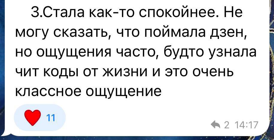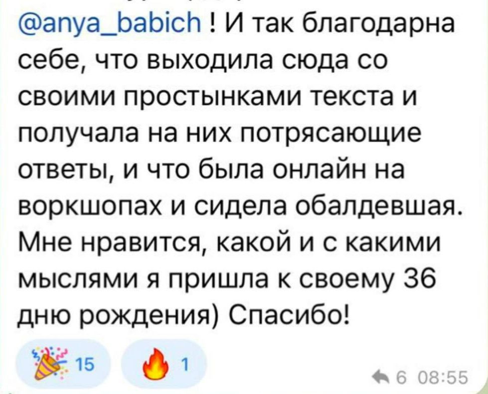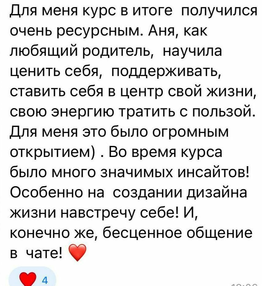Вы навсегда станете участником закрытого чата, гдесможете задавать вопросы куратору-психологу и общаться с единомышленниками.