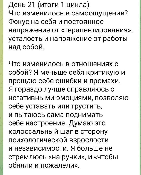Всего через 21 день вы почувствуете, что привычка ставить себя в центр своей жизни и быть внимательным к себе встроилась в вашу жизнь, как недостающий пазл