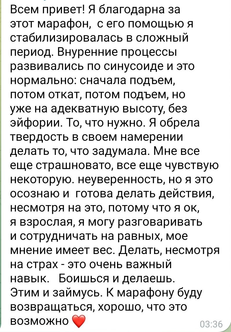 Сразу после оплаты вы станете участником чата, где будет возможность общаться с другими участниками и наставником-психологом, которому можно будет задавать вопросы
